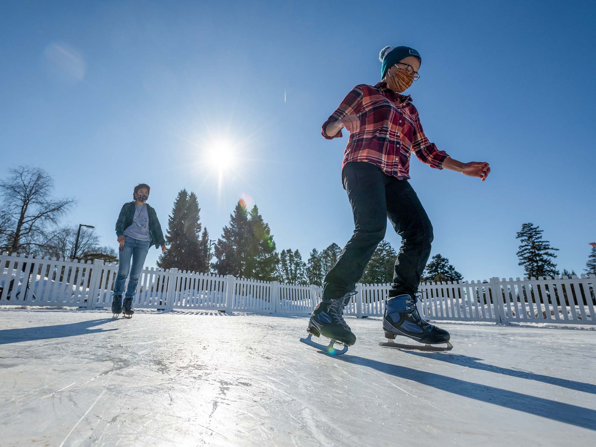 Throughout the pandemic, the College has sought to provide the mental health support students needed to navigate the stress of the pandemic. In order to decrease feelings of social isolation, the College installed a synthetic skating rink next to Walker Field House and sprinkled fire pits and Adirondack chairs around campus so students could socialize outdoors. Vassar also expanded the health-promotion and educational offerings to help prevent the loneliness and mental health challenges arising from more limited human contact. And the podcast Mindful and Reflective Moments, created jointly by several departments at Vassar, offered a series of guided meditations.
